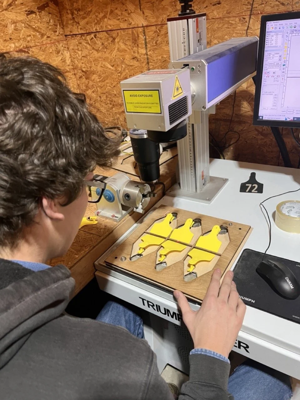 In the heart of the countryside, the Midnight Cattle Tag workers were more than just farmers; they were innovators. After grueling days on the farm, they gathered around their trusty computer, laser printing custom cattle tags beneath the starlit sky.